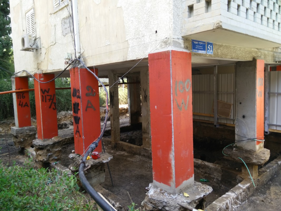 יהלום 9, פ"ת. תוספת לתמ"א 38 – תוספת בנייה וקומות למבנה ללא הריסה. חיזוק על בסיס כלונסאות.